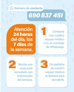 El acceso al servicio se realiza enviando un mensaje de WhatsApp al número de contacto 690 837 451. Tras escribir al equipo médico, las familias reciben una respuesta inmediata con la información del servicio y, posteriormente, son atendidas mediante llamada por un pediatra del equipo de Grupo IHP.